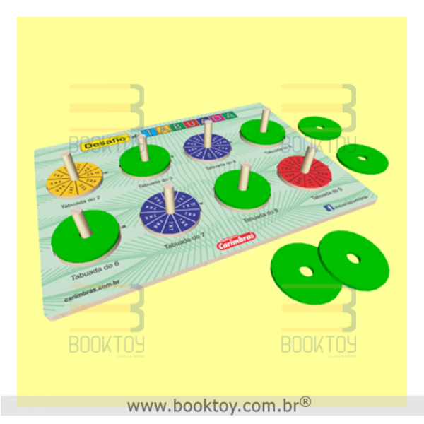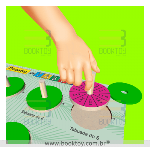 | Conteúdo | 01 tabuleiro medindo 280mm x 200mm x 37mm, com 08 hastes com impressão da tabuada do 2 ao 9, que giram para jogar o desafio da tabuada. |
