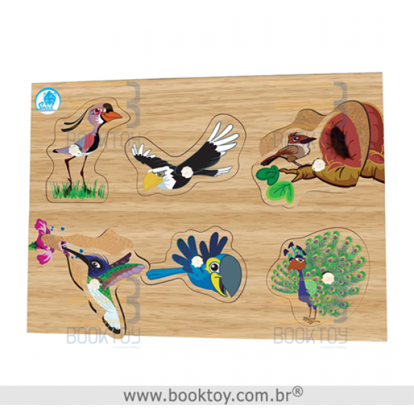 Nesta placa você vai encontrar Aves que são encaixados de acordo com o seu formato. Os pinos permitem o manuseio pelas crianças menores.