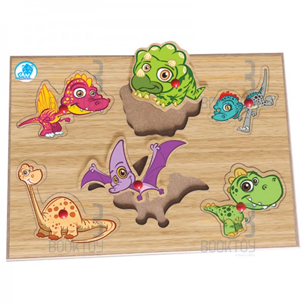 Nesta placa você vai encontrar dinossauros que são encaixados de acordo com o seu formato. Os pinos permitem o manuseio pelas crianças menores. Através deste brinquedo é possível despertar a curiosidade em relação à vida destes intrigantes animais.