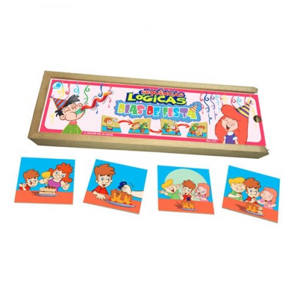 Cada conjunto de 4 placas representa uma história em sequência, cuja ordem a criança terá de descobrir.