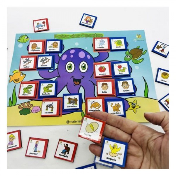 O Polvo dos Opostos é um recurso educativo lúdico que trabalha os conceitos de opostos de maneira divertida e envolvente. As crianças aprenderão a associar figuras opostas como “cheio/vazio”, “noite/dia” e “rápido/lento” enquanto aperfeiçoam seu vocabulário. O design colorido e amigável do polvo e seus amigos marinhos tornam a atividade mais atraente, incentivando a participação ativa das crianças.
