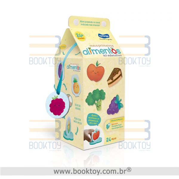 Kit com peças ilustradas onde as crianças aprendem brincando sobre os alimentos do dia a dia. Acompanha bases de EVA.