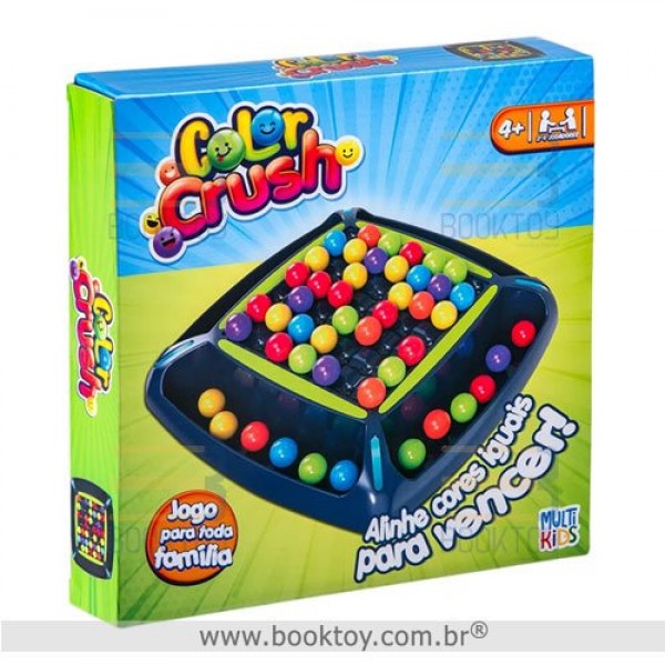 Color Crush é um jogo cujo objetivo consiste em alinhar cores iguais para vencer! Junte 3 ou mais bolinhas da mesma cor no tabuleiro para pontuar, ganha quem juntar mais bolinhas ao final do jogo. Você é capaz de identificar qual movimento vai te fazer coletar mais bolas? Esse jogo estimula concentração e raciocínio lógico de maneira divertida e colorida, para ser jogado com família e amigos.