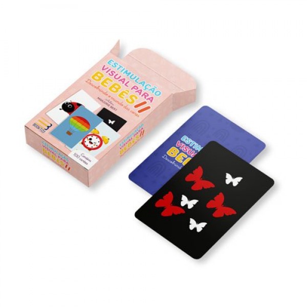 Como usar: Segure um cartão de contraste (preto, branco e vermelho) a uma distância de 20 a 30 cm da visão do bebê.