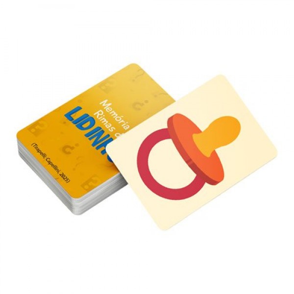 Memória de Rimas do Lidinho é um jogo divertido que estimula o desenvolvimento da habilidade metafonológica de rima, a ampliação do vocabulário, a estimulação do raciocínio lógico e da memória.