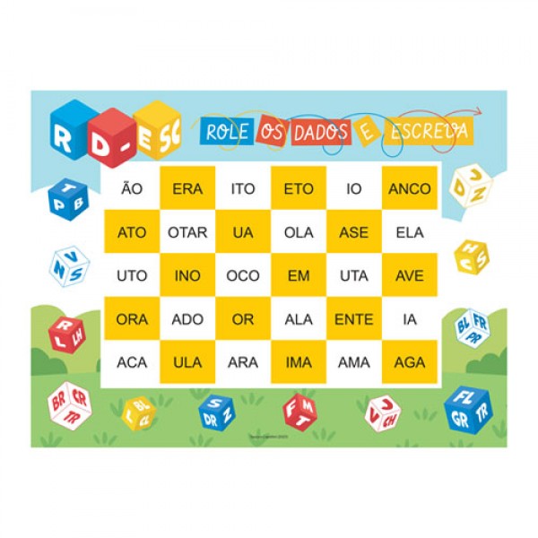 Combine a letra inicial do dado com as terminações das palavras que o dado tocar no tabuleiro de jogo. Leia as palavras formadas em voz alta.