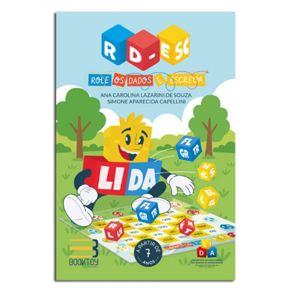 Conteúdo | 1 tabuleiro dobrável/ 12 dados para formação de palavras com silabas simples e complexas/ 4 blocos para escrita reais com ficha catalográfica/ 1 lápis e uma lista de palavras de referencia para o jogo |