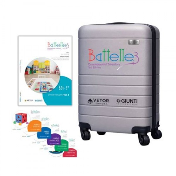 Coleção completa do Inventário de Desenvolvimento Battelle, 3ºedição (BDI-3), contemplando o conjunto integral de materiais necessários para a avaliação, conforme detalhado em Composição. O instrumento é disponibilizado com seus volumes de instrução e aplicação, cartões, cadernos e formulários, além do kit de manipuláveis, organizados para uso profissional e rotina de atendimento. Para favorecer a conservação, a organização e o transporte do material, o conjunto é enviado em mala de rodinha, possibilitando maior praticidade no deslocamento entre contextos de aplicação e ambientes institucionais.