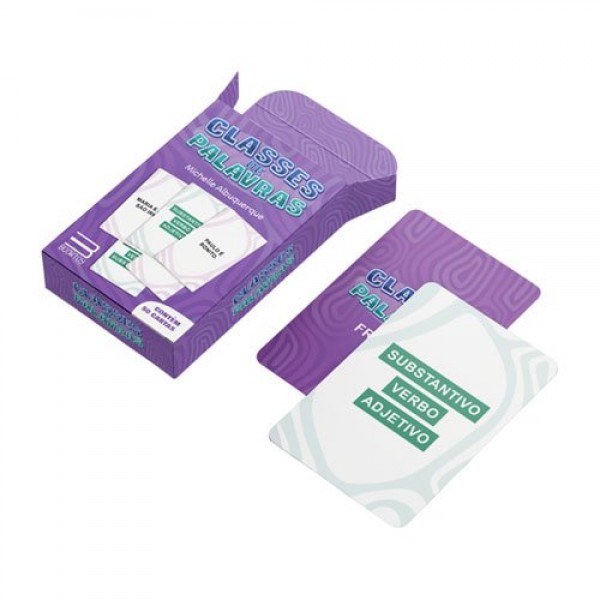 Este jogo caixinha tem como objetivo principal trabalhar a Classificação Morfológica das palavras no contexto das frases, de forma lúdica e interativa. São 50 cartas, das quais 25 são frases desafios e outras 25 são as respectivas respostas. A criança deve ler a carta com a frase e escolher, entre as possíveis respostas, aquela que melhor corresponde, realizando a análise morfológica. Além de trabalhar a leitura, a interpretação, a classificação morfológica e a atenção, o jogo pode ser usado para ilustração e muito mais. Ele pode ser usado com escolares do 5° ao 9° ano, por profissionais da educação, pedagogos, psicopedagogos, fonoaudiólogos e também pelos pais.