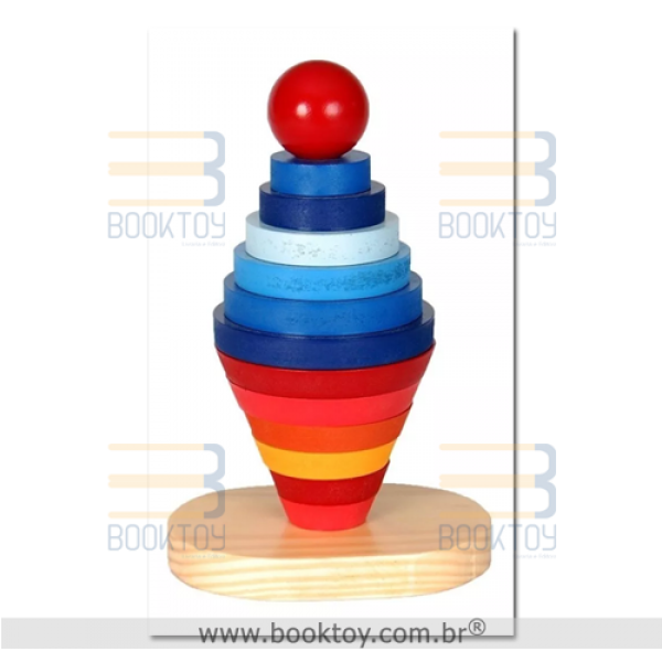 | Conteúdo | 01 Base e 12 peças em madeira coloridas em formato cilíndrico e cônico com medidas diversas. |