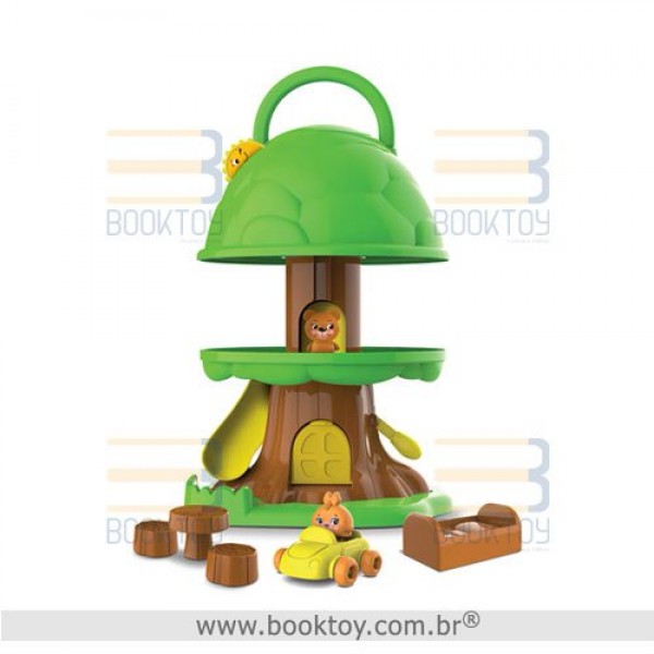 Árvore cheia de atividades para explorar, abre e fecha com elevador e escorregador, para brincar e contar Histórias!
