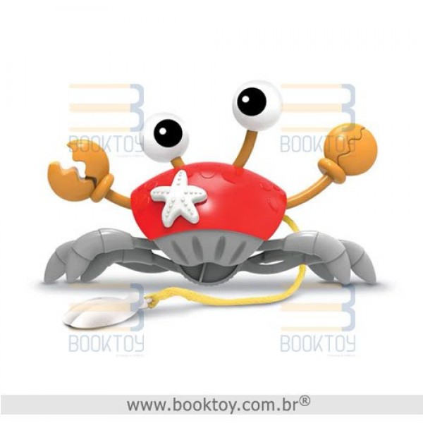 Cacá, o caranguejo cheio de atividades! Todo engraçadinho. Puxando a cordinha ele sai andando, mexendo as perninhas. Olhinhos e garrinhas sobem e descem.