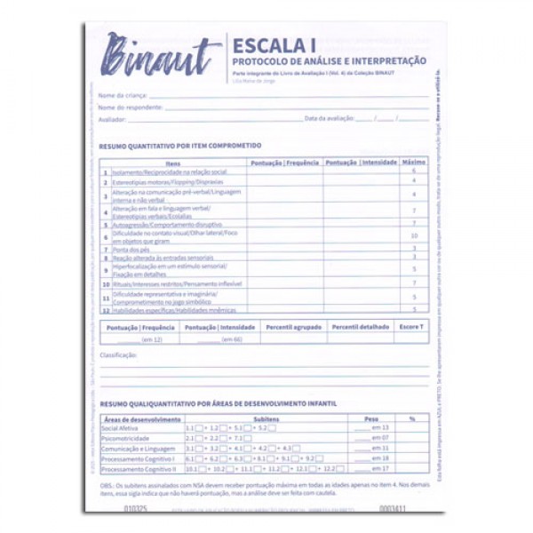 | Título | BINAUT ESCALA I PROTOCOLO DE ANALISE E INTERPRETACAO VOL. 4 |