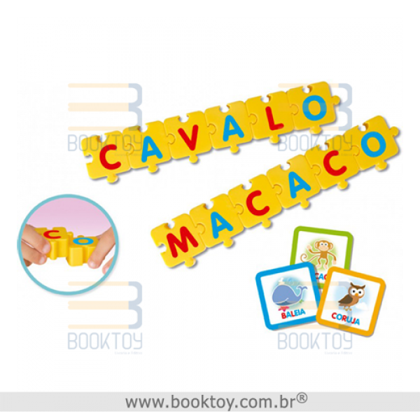 Encaixando as peças com as letras do alfabeto, a criança forma palavras, ajudando no processo da alfabetização. As cartelas com animais completam a brincadeira com nomes e seus habitats. Um jogo completo que reúne disciplinas em um só tema.
