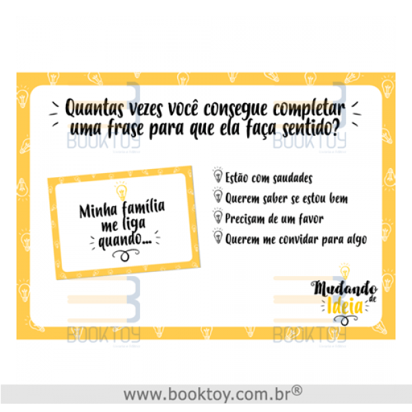 Nesta atividade o participante deverá completar as frases de modo que tenham sentido. Porém, para ficar ainda mais desafiante, o participante também deverá completar as frases com uma continuação sem sentido algum.