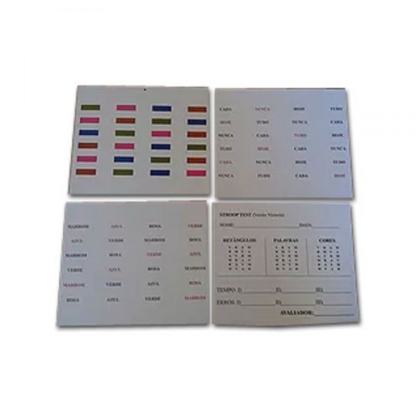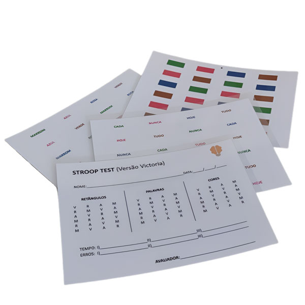 O Teste Stroop Victória (Regard, 1981) é um teste de domínio público que avalia as funções executivas por meio das habilidades de atenção seletiva, monitoramento mental e comportamento inibitório. Nesse teste, três diferentes cartões são apresentados para o participante. No primeiro, há pontos coloridos cuja cor o participante deve nomear. No segundo, há palavras neutras escritas na mesma cor que os pontos do primeiro cartão, e o participante deve nomear as cores. Por fim, no terceiro cartão há palavras para cores impressas em cor não correspondente, de forma que o participante deve informar a cor impressa em vez de ler as palavras.